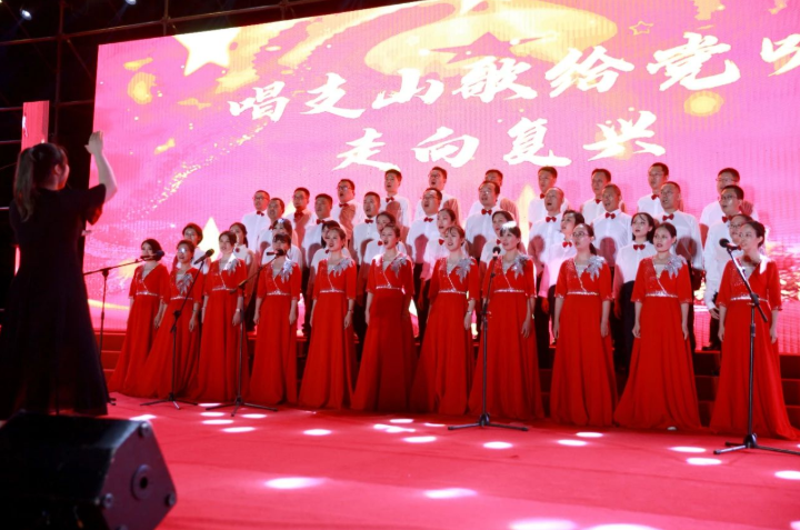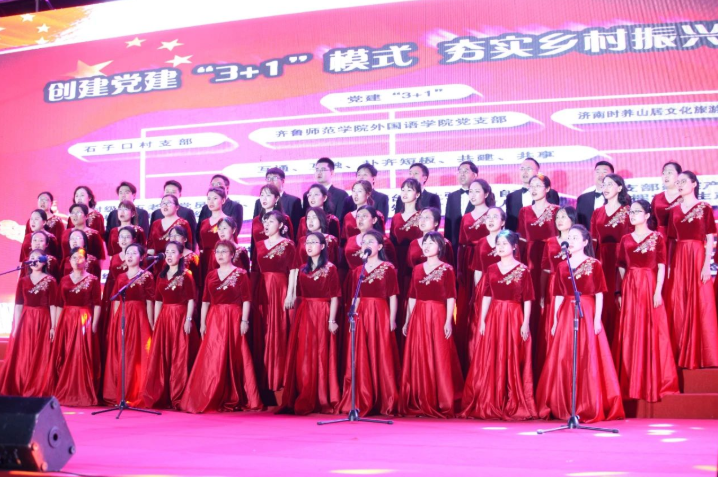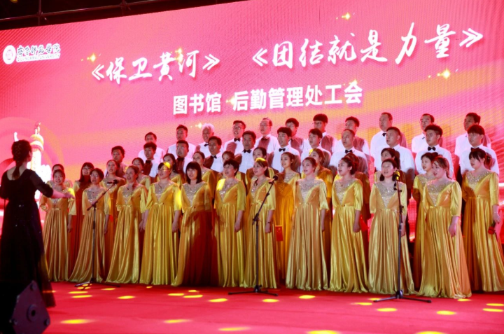 华灯初上,歌声嘹亮。“我们走在大路上,意气风发斗志昂扬……”数学学院工会用饱含深情、振奋人心的歌声拉开合唱比赛的序幕。由学校管理服务部门和各二级学院组成的18支参赛代表队放声歌唱,他们意气风发、斗志昂扬、步履铿锵、信念坚定,倾情表达出了他们对党和祖国那份血浓于水的炙热深情,展现出齐鲁师范学院人奋进“十四五”,开启新征程的豪情壮志。《不忘初心》《没有共产党就没有新中国》《唱支山歌给党听》《保卫黄河》《歌唱祖国》《长江之歌》《南泥湾》《打靶归来》《祖国在我心窝里》……一首首脍炙人口、耳熟能详的红色经典响彻齐鲁师范学院上空,这是全体齐鲁师范学院人为心爱的党献上的最真挚的生日祝福,百年大党的恢宏历程、精神血脉、红色基因也在不息的传唱中不断得到升华、弘扬、传承。