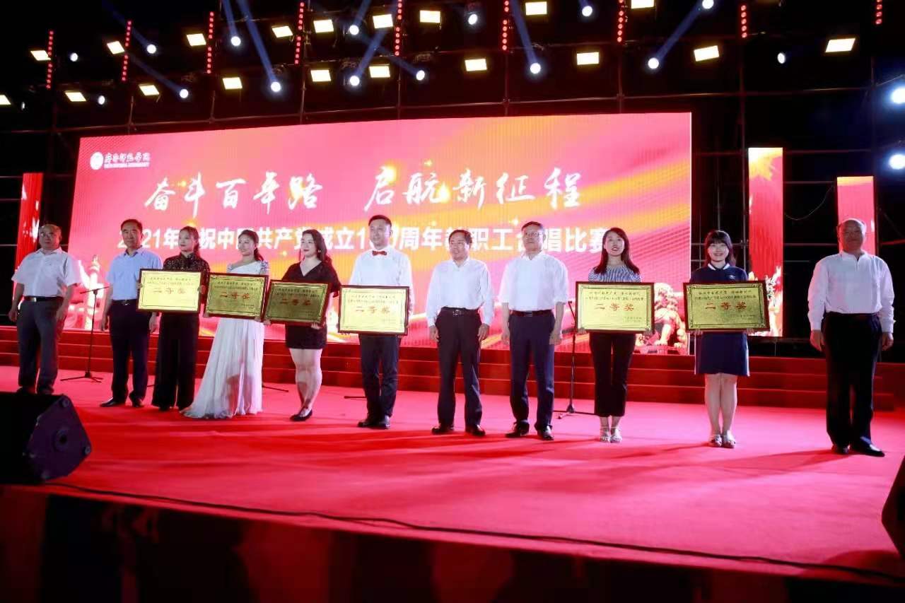 守正创新,领航争先。努力拼搏还远远不够,为在合唱比赛中展现出最佳水平,用最好最优异的成绩向建党百年献礼,18个参赛队伍可谓铆足劲头、下足功夫。多个学院创新性地将专业特色、学科优势巧妙融入比赛进程,比赛舞台上亮点频出、惊喜不断、掌声如潮。体育学院工会不仅展现出体育舞蹈特色优势,还将歌曲《最亲的人》加以改编,用真诚质朴的词语表达出对党的感激、热爱之情,以及对学校高质量发展的美好祈愿;美术学院工会用书画作品为建党百年献礼……此外,机关第二工会、机关第一工会、经济与管理学院工会、历史与社会发展学院工会等多个工会在演唱进程中融入舞蹈、诗朗诵、沙画表演、手语表演等形式,极大的丰富了比赛内容,以更加喜闻乐见的形式引领师生们爱党爱国,让党史学习教育真正入耳入脑入心。