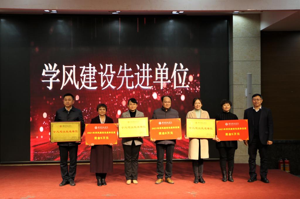 王玉华作大会总结讲话。王玉华充分肯定近年来学校学风建设取得的成效,对获奖个人和集体表示祝贺,对全体师生员工的辛勤付出表达感谢。他指出,学校每年举办学风建设总结表彰暨推进大会,是不断集思广益、提高认识,齐抓共管、标本兼治,鼓劲动员、深入推进的过程,下大力气抓学风建设,能够引导学生在学习中升华气质,以学养人、治心养性,不断提高学校人才培养质量和办学特色水平。