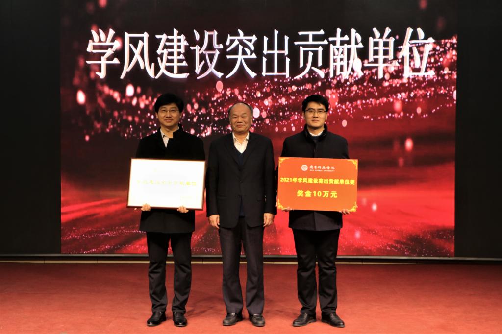 会上,学生工作部(处)部长孙磊宣读了《关于表彰齐鲁师范学院第四届“学风引领计划”优良学风先进个人、先进宿舍、先进班级的决定》以及《关于表彰齐鲁师范学院2020-2021学年学风建设先进个人及单位的决定》。校领导向获奖个人和集体颁发证书及奖金,外国语学院教师汪洁、生命科学学院辅导员祖群、历史文化学院学生许晓龙作大会典型发言。