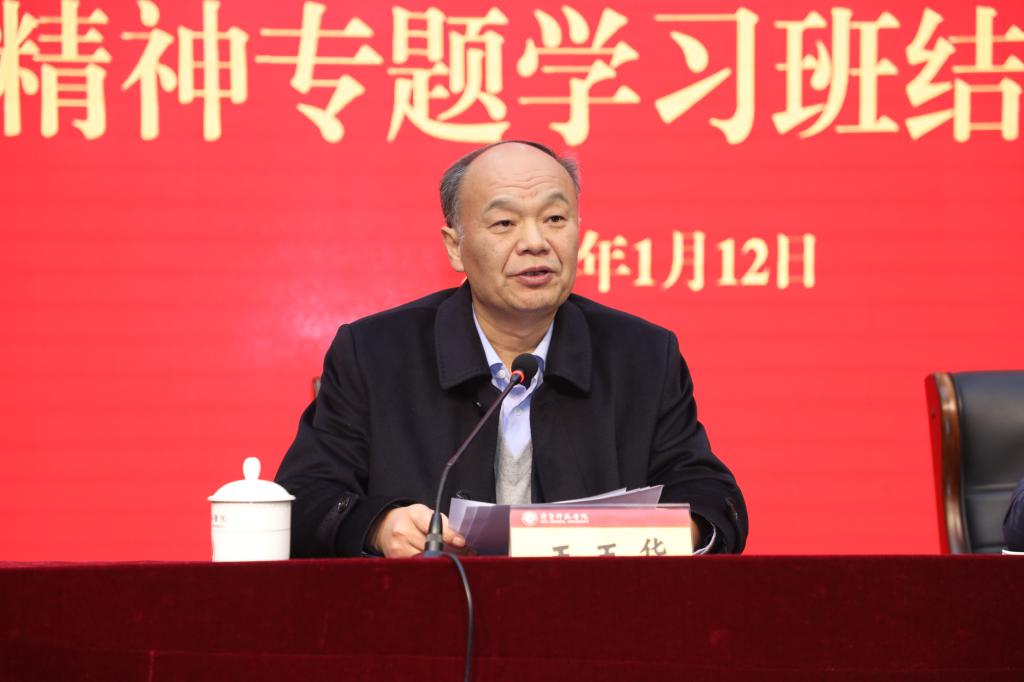 王玉华结合实际工作,对全体学员提出三点希望:一要将学习成果转化为坚定不移的政治信仰,用党的科学理论武装头脑、指导实践、推动工作,用自我革命的政治品格真正实现自我净化、自我完善、自我革新、自我提高,进一步强化理论武装,筑牢政治忠诚。二要将学习成果转化为扎实稳进的工作作风,坚持问题导向、强化作风建设,在专题学习的基础上,持续在学懂、弄通、做实上下功夫、求实效,推动学习往深里走、往实里走、往心里走,狠抓落实不松劲,切实把学习成果转化为指导实践、推动工作的强大力量,努力成为政治过硬、担当作为的可靠干部。三要将学习成果转化为锐意笃行的奋进力量,努力把学习成果体现到增强本领、解决问题、推动工作上来,坚持问题导向、统筹协调,不断提高攻坚克难、驾驭复杂局面的能力,统筹抓好岁末年初的各项工作任务,认真谋划好今年和“十四五”期间的目标,全力推动党的十九届六中全会精神落地生根。