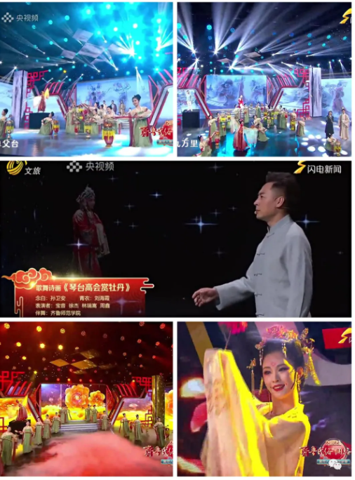 该台晚会立足我省沿黄河九城市民间文艺及非遗节目,让优秀传统文化融合当代生活,借助网络传播,呈现新时代的民间民俗艺术特色。音乐学院学子始终努力学习、听从指挥、勇挑重担、勇往直前,用专业素养严格要求自己,以优美的舞姿和良好的形象向电视台提交了一份满意的答卷。窈窕身影随着音律跃动,琴键琴弦奏出琴音悠悠,他们装点了民俗春晚的舞台,以精湛的技艺和优良的作风为齐鲁师范学院赢得了荣誉。