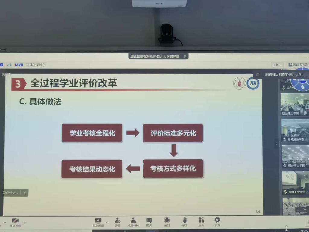 山东省教育厅高教处处长李霞深度解读《山东省教育厅关于推动课堂教学改革全面提高普通本科高校人才培养质量的通知》文件精神,结合“川大模式”详细介绍课堂教学改革顶层设计、推进路径与保障机制。