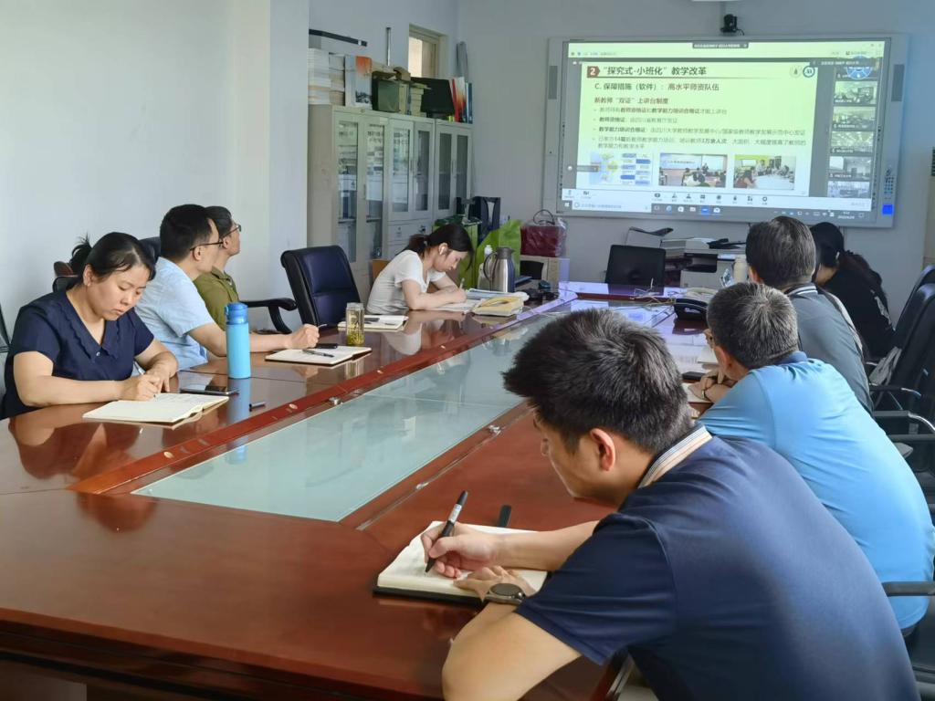 6月 24 日上午,省教育厅召开了全省普通本科高校课堂教学改革推进会。本次会议以视频形式召开,主会场设在省教育厅,我校分会场设在教务处会议室。学校教务处全体人员、各学院副院长在我校分会场观看线上直播。各二级学院院长、各专业负责人、教研室主任、一流课程负责人、骨干教师等组织了线上收看活动。