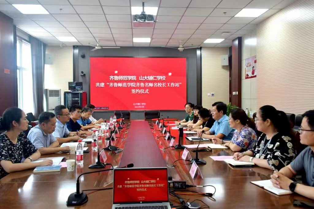 为加强与中小学的交流合作,充分发挥齐鲁名师名校长的带动引领作用,近日,与山大辅仁学校共建齐鲁名师名校长工作站签约仪式在山大辅仁学校会议室举行,出席签约仪式的有山大辅仁学校校长郑廷伟及校领导班子成员,教务处处长孙洪兆、数学学院党委书记郑延亮、院长张克玉及教研室主任代表。
