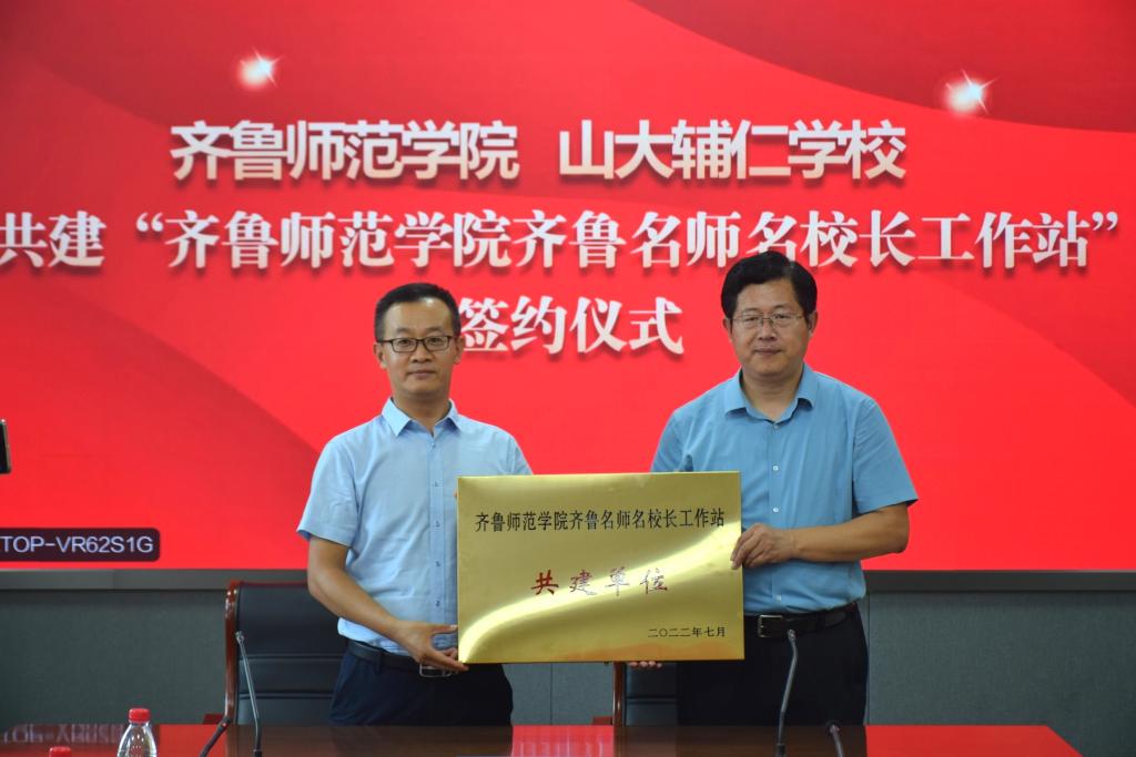 签约仪式上,郑廷伟介绍了山大辅仁学校的基本情况,学校在人才培养、教育教学、教学研究及课程资源开发等方面的成绩,希望我校专家经常进校指导,在教学研究方面、师资互聘及到双方挂职锻炼等方面加强合作。孙洪兆介绍了齐鲁师范学院的基本情况,说明共建齐鲁名师名校长工作站的意义,希望以此为契机,加深与山大辅仁学校的合作交流。