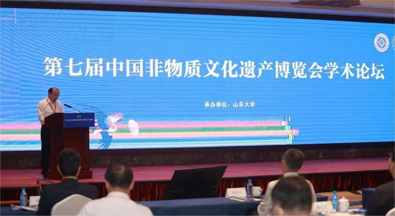 8月26日下午,为深入贯彻习近平总书记关于非遗保护工作的重要指示批示精神,认真落实中共中央办公厅、国务院办公厅《关于进一步加强非物质文化遗产保护工作的意见》,由文化和旅游部、山东省人民政府共同主办,山东大学承办的第七届中国非物质文化遗产博览会学术论坛在山东省济南舜耕国际会展中心举行。学术论坛的主题为“构建中国特色非遗理论与实践研究体系”。文化和旅游部非物质文化遗产司司长王晨阳,山东大学党委副书记王君松出席论坛并致辞。齐鲁师范学院党委书记、齐鲁师范学院中国乡村调查研究中心主任林松柏应邀出席会议并作主题发言。论坛开幕式由山东省文化和旅游厅党组成员、副厅长王炳春主持。