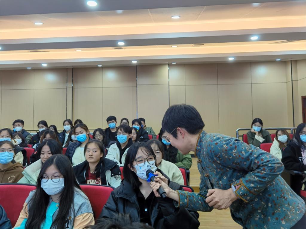 徐洁教授以“新课标背景下的课堂教学变革”为题,围绕“新课标的学习方法分析”和“课堂教学变革路径分析”两个方面进行深入解读。报告既有教育理念的更新与阐释,更有来自实践的鲜活、典型案例,具有理论与实践融合的鲜明特点,体现了前沿性、先进性、操作性。报告结束后,徐洁教授就大家关心的教学问题进行解答,在场师生受益匪浅。