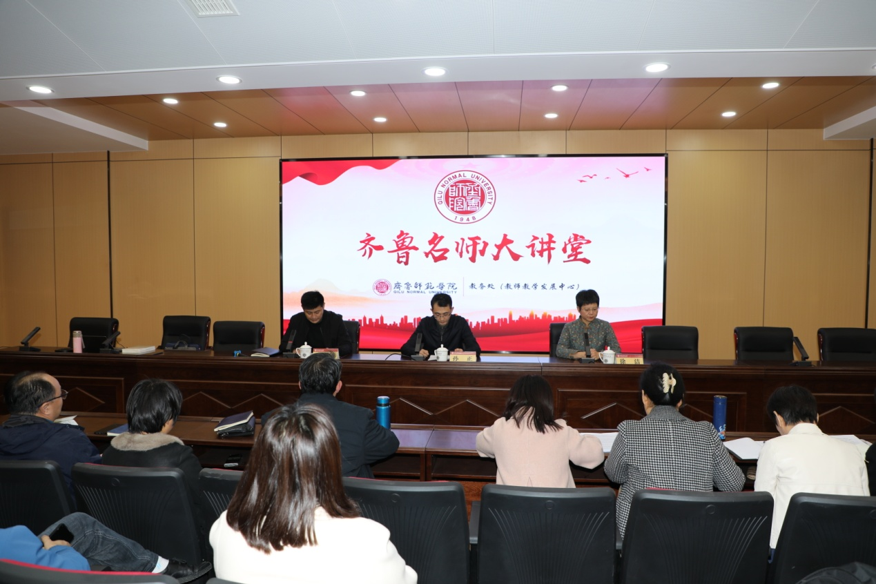 为深化我校“职前培养与职后培训一体化”师范教育特色,推动职后培训内容融入师范生专业培养体系,我校“齐鲁名师大讲堂”首场讲座于11月3日下午隆重举行,山东基础教育课程研究中心主任徐洁教授主讲。学校党委委员、副校长孙正出席并讲话,教务处副处长李剑主持讲座,各学院教学副院长、师范类专业负责人、教研室主任和课程教学论教师及全校2022级师范类本科生线上线下同步参加学习。