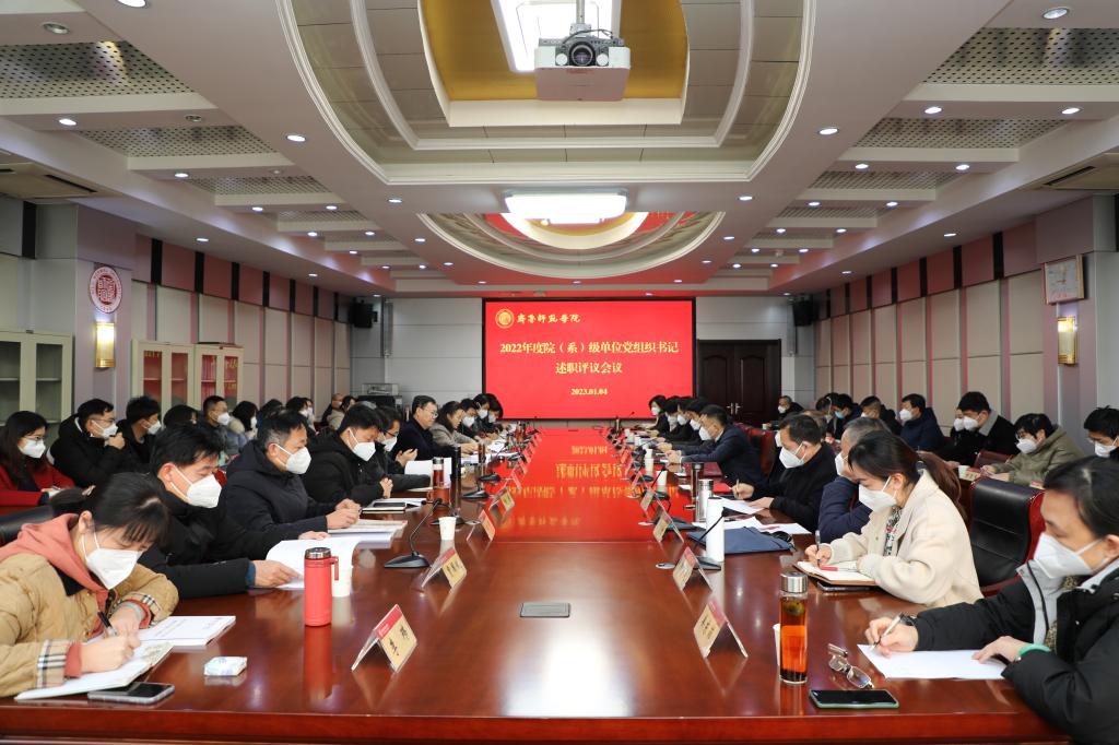 2022年度院(系)级单位党组织书记履行全面从严治党责任和抓基层党建工作述职评议工作采取现场述职和书面述职相结合方式进行。会上,离退休干部党委、马克思主义学院党委等16个党委(党总支)书记分别进行了现场述职。学校党委书记林松柏逐一进行点评,肯定工作成绩、点出问题不足,提出努力方向。