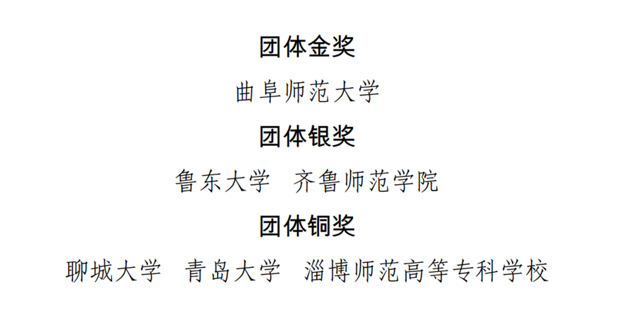 近日,第十届山东省师范类高校学生从业技能大赛省级决赛圆满落幕,我校在本届大赛中表现突出,荣获佳绩。其中,毕家祥等16位同学获得一等奖,于季等18位同学获得二等奖,刘淑君等21位同学获得三等奖;路雅瑞等17位教师获省级优秀辅导教师荣誉称号;学生获奖总数位居全省第一,学校获团体银奖、优秀组织奖。