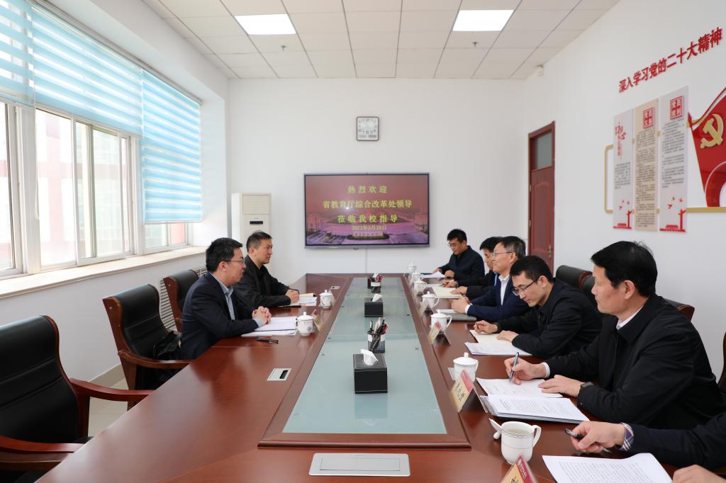 3月29日上午,省教育厅综合改革处二级调研员(主持工作)石仁勇一行到我校调研教育评价改革工作,学校党委书记林松柏,党委委员、副校长李伯伟,党委委员、副校长孙正,党委委员、组织部长杨磊,以及有关部门负责人参加了调研活动。