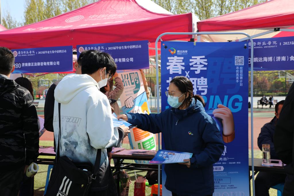 为深入贯彻落实党中央“就业优先”决策部署,积极推进春季促就业攻坚行动,全力促进我校毕业生顺利就业、充分就业、高质量就业,4月8日,齐鲁师范学院“‘就选山东 情留齐鲁’2023届毕业生集中招聘活动”在章丘校区田径场成功举办,来自省内外320家用人单位到场参会,提供岗位21027个,5000余名学生踊跃参加。校党委副书记赵敏、章丘区人社局局长李士锋现场调研用人单位人才招聘情况。章丘区人社局、大学园区管理服务中心、章丘区中华职业教育社、淄博高新区人社中心相关负责同志,校党委办公室、党委宣传部、学生工作部(处)、安全管理处、团委、后勤管理处等相关部门负责同志、各二级学院党委副书记、毕业班辅导员共同参加活动。