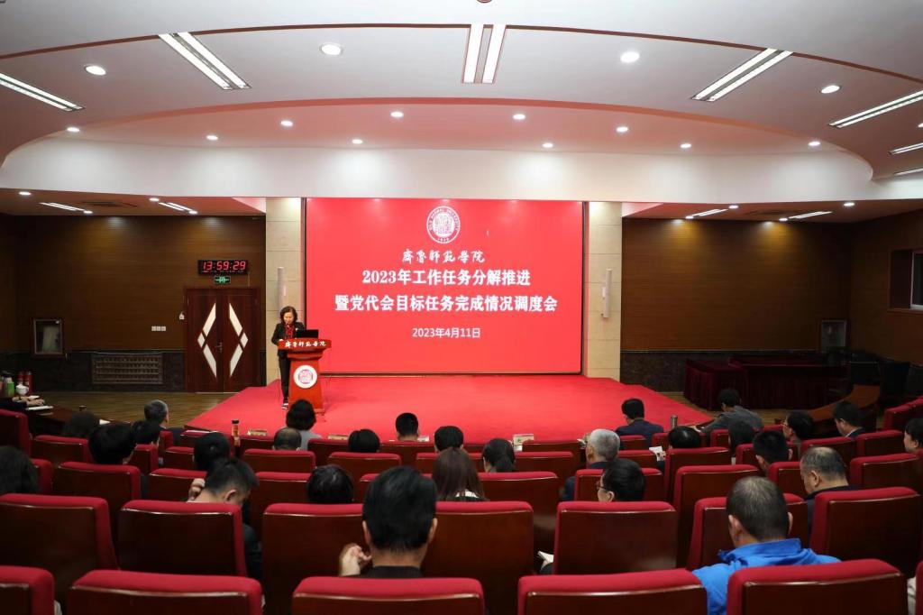 4月11日,学校在章丘校区召开2023年工作任务分解推进暨党代会目标任务完成情况调度会,校领导、各部门单位负责人、各党委(党总支)书记参加会议,党委副书记赵敏主持会议。