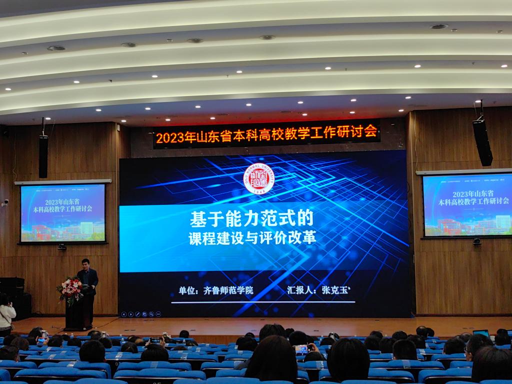 齐鲁师范学院与山东大学、青岛理工大学、青岛大学、济南大学、山东财经大学、青岛农业大学等11所高校的教务处负责人围绕基础学科拔尖人才培养、全面推进课堂教学改革、专业调整优化、一流课程建设等内容作了教学工作经验分享。张克玉作了《基于能力范式的课程建设与评价改革》的典型发言。从课程评价体系改革背景、“能力范式”教学改革理念、学习过程评价与指标体系、课程考核评价方式改革及“一人一精品”工程建设等五个方面交流分享了学校在课程建设与评价改革的思路、实施路径及所取得的成效。