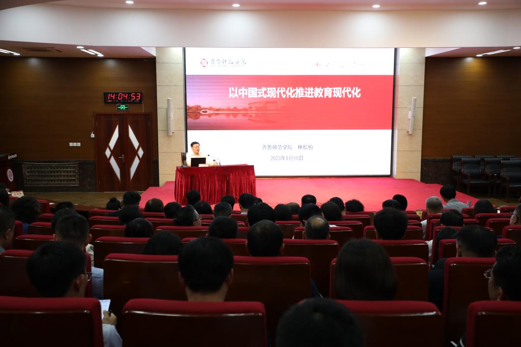 林松柏从中国式现代化的提出出发,阐释了中国式现代化的科学内涵,从“九个坚持”“五育并举”“四个加快建成”等习近平总书记对教育的要求及教育现代化的目标、基本理念、基本原则、十大战略任务、实施路径出发,深刻解读了教育现代化的任务要求,最后从回归教育本质、转变教育观念、重构人才培养方案、加快课程建设、加强教材体系建设、重塑保障体系、服务国家战略等七个方面,指出在当前新时代新征程上,学校如何立足实际、发挥优势,在教育现代化新征程中做出“齐鲁师范学院贡献”。