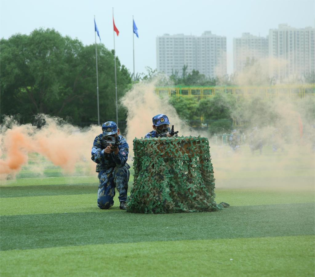 歌声嘹亮,国旗飘扬,大会在雄壮的国歌声中拉开帷幕。学生军训团20个方阵依次经过主席台,接受检阅。日常养成训练军容严整、军姿飒爽、动作规范;卧倒、滚翻、搜索前进等单兵技能,掩护配合、攻防兼备的班组战术,不仅是对同学们自身技能的训练,更是对团队配合磨练和血性意志的锤炼;拳打、脚踢、摔打、夺刀、夺枪……“军体拳”培养了同学们阳刚气质、顽强意志、强健体魄和过人胆识,是对矢志不渝的战斗精神和对国家忠诚信念的体现。
