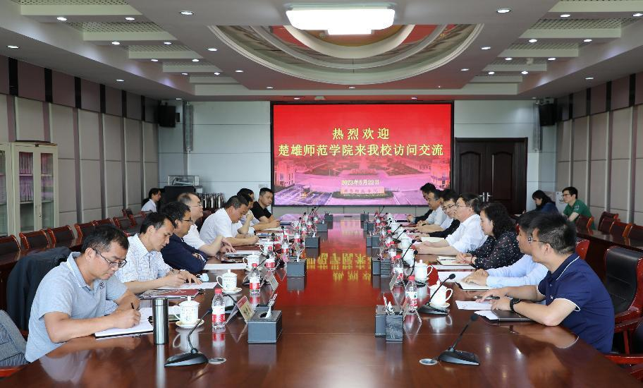 5月22日,楚雄师范学院党委书记何伟全一行8人到齐鲁师范学院考察交流。学校党委书记林松柏,党委副书记赵敏,党委委员、副校长孙正热情接待了考察团一行。
