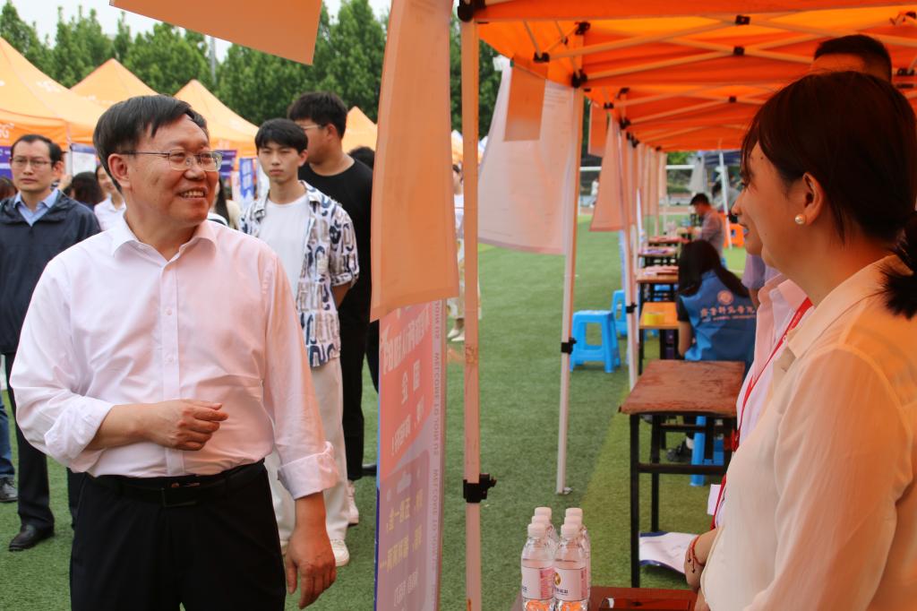 林松柏、赵敏莅临活动现场,与章丘区人社局、滨州科技职业学院、鲁南制药、山东金拱门食品有限公司等多家用人单位进行了深入交流,了解企业人才需求,洽谈开展合作事宜,现场推荐学校毕业生。林松柏在走访章丘人社专区时表示,齐鲁师范学院一直以来坚持立足地方办大学的理念,未来要继续与服务地方经济发展紧密结合,提高毕业生留鲁、留济、留章就业率。在与校企合作单位沟通时,林松柏对用人单位长期以来对学校毕业生就业工作的关心和支持表示感谢,下一步学校将持续加强通识教育,提升学生学习能力和综合素养。他还结合自身工作经历真诚建议用人单位注重对未来发展前景的规划与描述,提高人才吸引力。用人单位详细介绍了各自业务领域、管理模式及人才需求等,并对我校人才培养质量表示充分的肯定,希望学校为单位发展提供更多的人才支持,持续深化多领域合作。