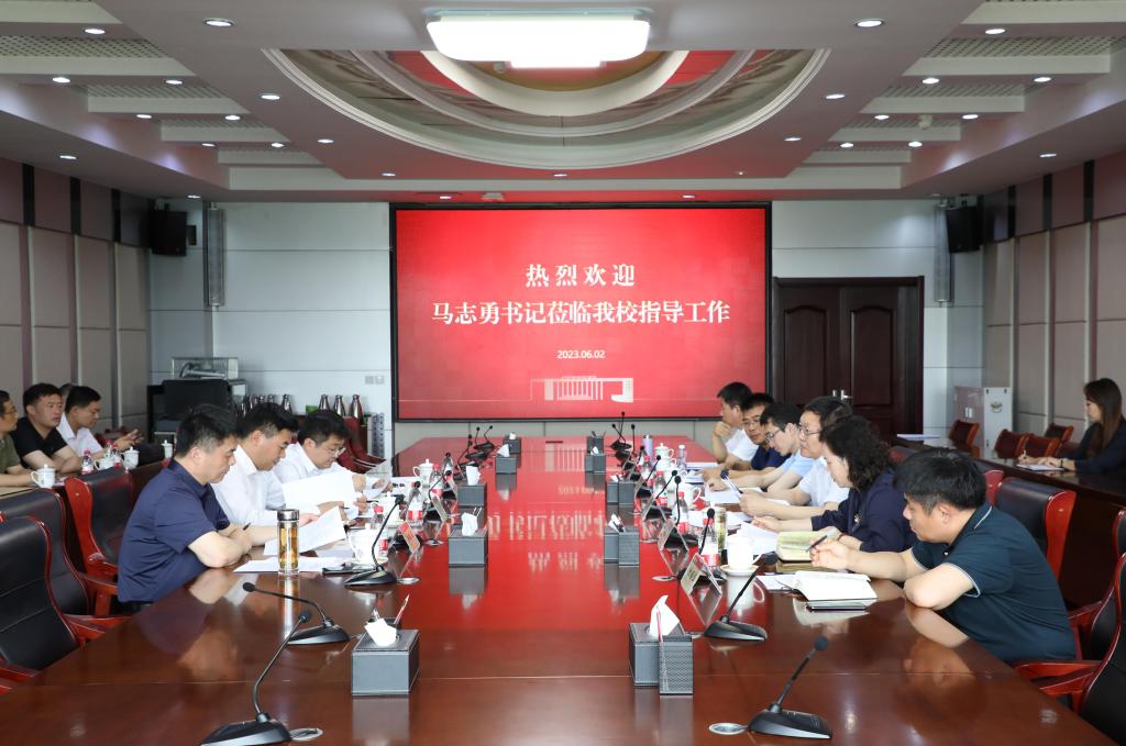 6月2日上午,章丘区委书记马志勇、区政府副区长丁兆方、区教育和体育局局长刘国兴一行到齐鲁师范学院就共建附属学校有关情况进行调研座谈。学校党委书记林松柏主持座谈并致辞,党委副书记赵敏,党委委员、副校长孙正,党委办公室、教务处、合作发展办公室负责人参加座谈。