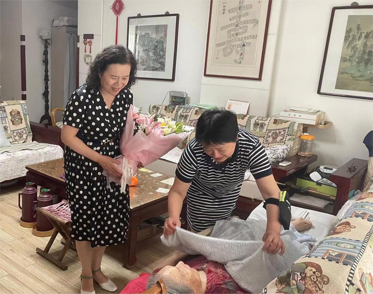 6月28日上午,赵敏一行亲切看望了94岁高龄的离休干部姜天璞同志。赵敏与其子女亲切交谈,详细询问了老人的身体状况、日常生活、医疗保障等情况,为她送上“七一”的节日祝福以及鲜花、慰问品,并转达了学校党委的关心关爱,希望老人保重身体、安享晚年。赵敏还叮嘱工作人员要常态化走访慰问离休老党员,更加用心用情做好服务保障工作。