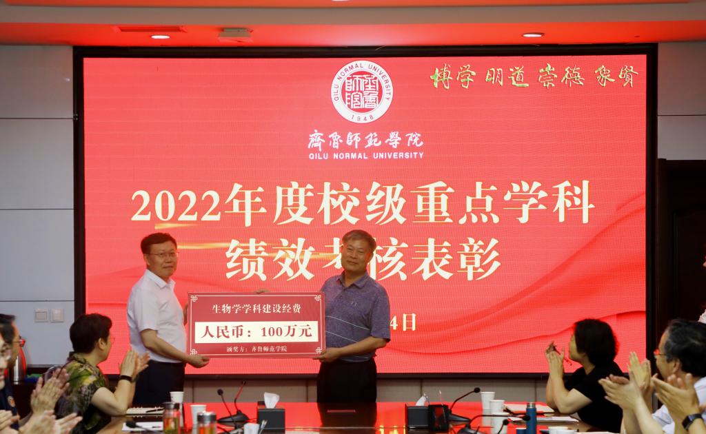 会上,林松柏代表学校向2022年校级重点学科考核优异的生物学、物理学两个学科及学科带头人颁发建设经费和学科带头人岗位津贴。