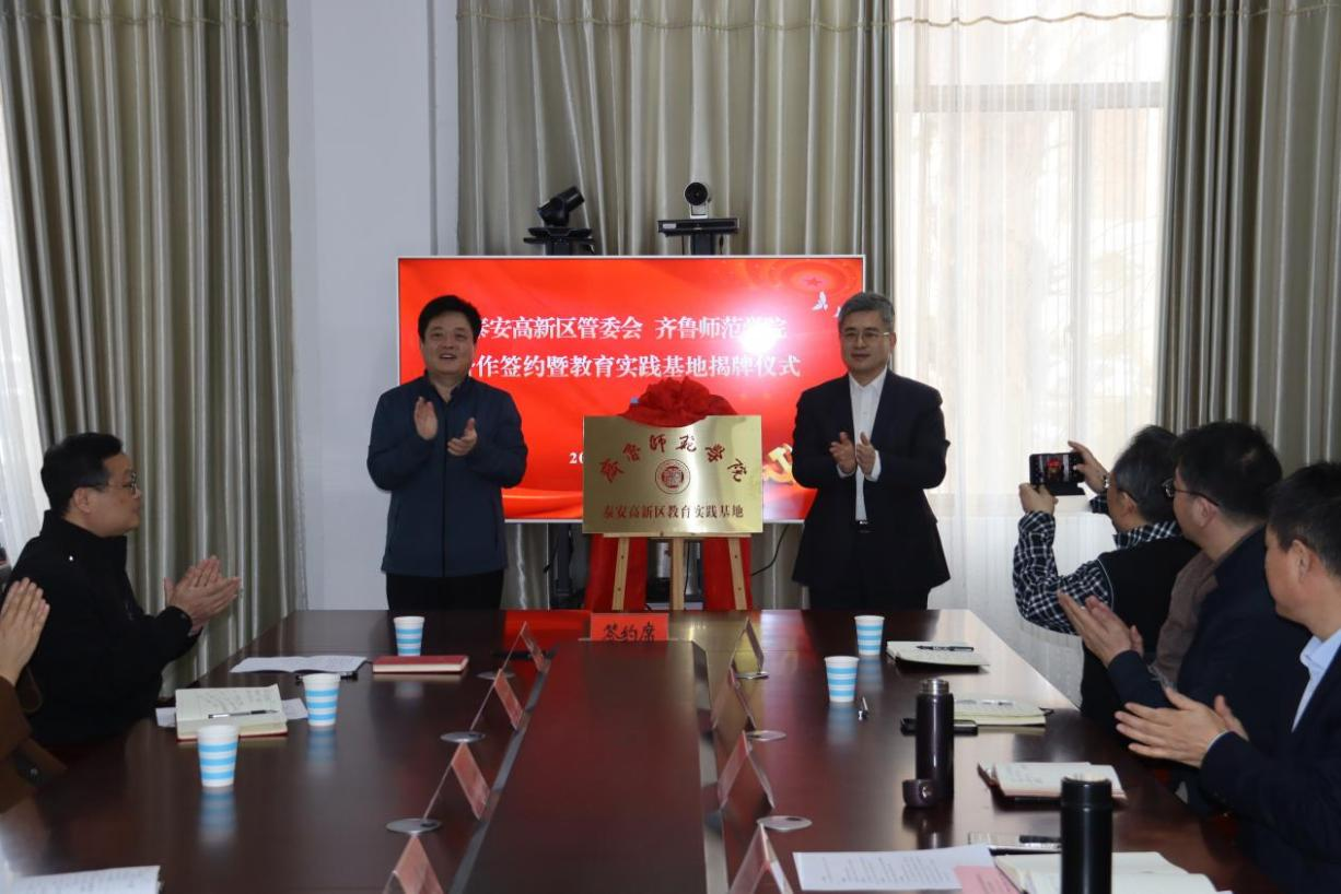 杜平、张兆明为“齐鲁师范学院泰安高新区教育实践基地”揭牌。