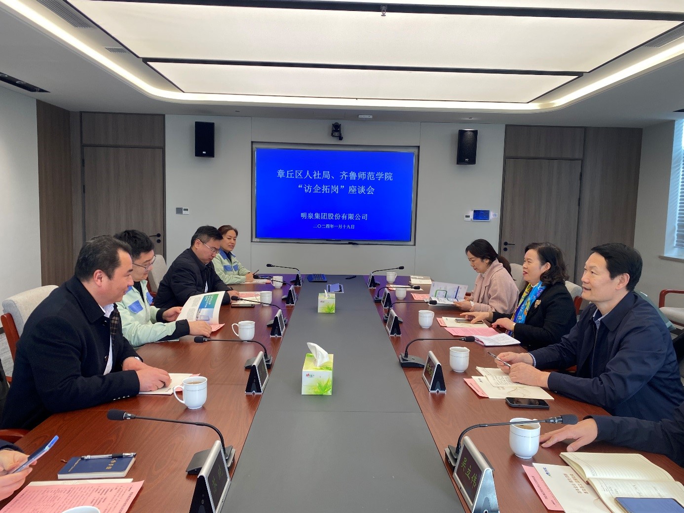 为贯彻落实党中央、国务院,省委、省政府关于高校毕业生就业工作的决策部署,进一步拓展毕业生就业市场,1月19日上午,齐鲁师范学院联合章丘区相关职能部门共同开展访企拓岗专项活动,学校党委副书记赵敏,章丘区人力资源和社会保障局党组成员、区公共就业和人才服务中心主任滕涛分别带队,先后到章丘双语学校和明泉集团股份有限公司进行座谈交流。
