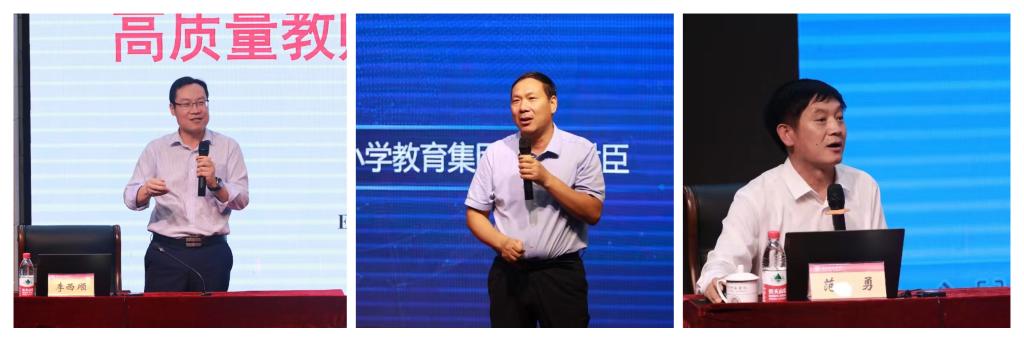 “如果一个人把在学校学到的一切都忘记了,那么还留下来的,就是所谓教育的成果。”范勇讲述了自己在教育部“国培计划”中小学名校长领航工程齐鲁师范学院基地三年的学习经历,作了题为《沉淀生命中那些最有价值的东西》的报告。结合新入职教师的班主任工作经历,他表示从“知识范式”到“能力范式”的变革能更好的面向需求。范勇强调,“守正、创新、实战”的育人价值导向是教育战略的头脑;基于“知识范式”到“能力范式”的变革是教育实战的能力;承担繁重的任务,适应国家需要的家国情怀修炼是教育挑战性的任务。
