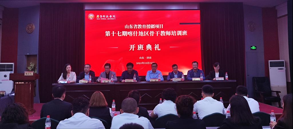 10月15日,山东省教育援疆项目第十七期喀什地区骨干教师培训班开班典礼在济南举行。齐鲁师范学院党委副书记、校长郑秀文,山东省援疆工作指挥部干部人才组副组长王廷,山东省教育厅教师工作处副处级干部孙鹏,喀什地区教育局师资培训管理中心干部买合木提江·阿巴白克力,齐鲁师范学院基础教育服务中心(援疆教育中心)主任孙卫国,教师教育学院副院长薛绍聪以及培训班首席专家王蕾出席开班典礼。来自喀什地区的150名骨干教师参训,开班典礼由教师教育学院院长毕诗文主持。