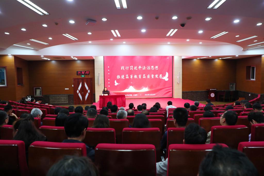 学校党委副书记赵敏在总结讲话时指出,如何将习近平法治思想扎实有效地融入高等教育,切实推进法治校园建设,实现校园治理体系和治理能力现代化,与学校各项事业同向发力,多层贯通,协同共进,从而全面推进学校内涵式高质量发展,是一个摆在高等教育面前的新课题。