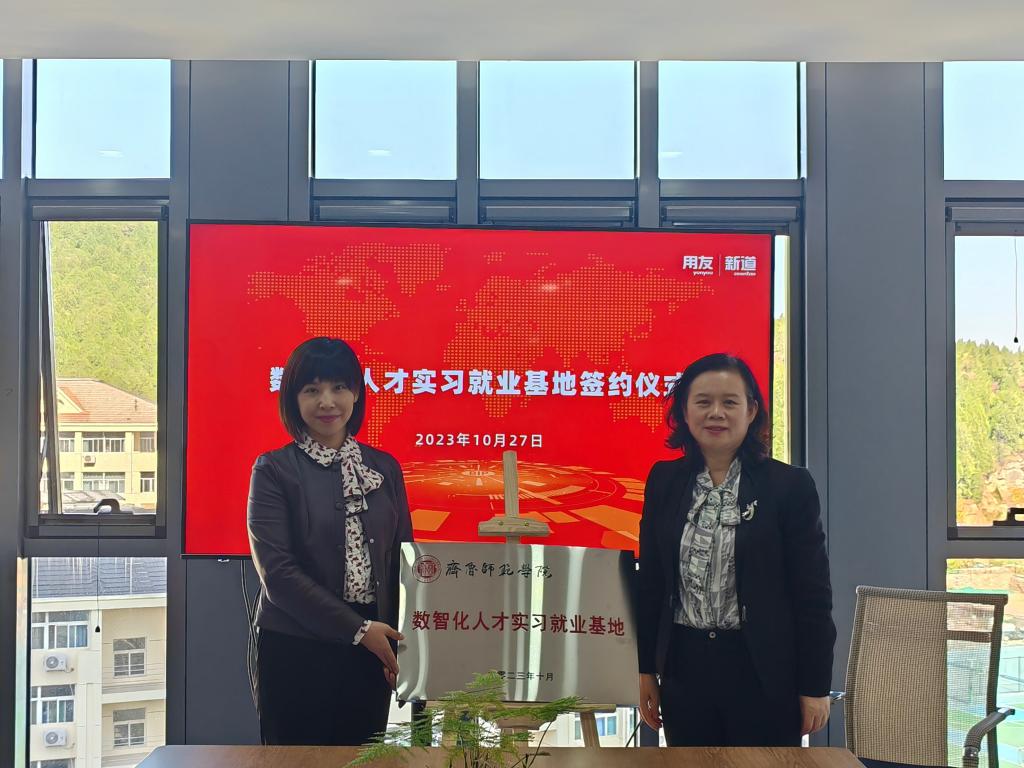 10月27日,齐鲁师范学院与用友集团山东分公司签订数智化人才实习就业基地签约、授牌仪式顺利举行。用友集团山东分公司副总经理原嫄,新道科技(用友集团独立上市公司)山东分公司总经理法宁,学校党委委员、副书记赵敏,经济与管理学院院长周健,经济与管理学院党委书记杨自旗等共同参加签约、授牌仪式。