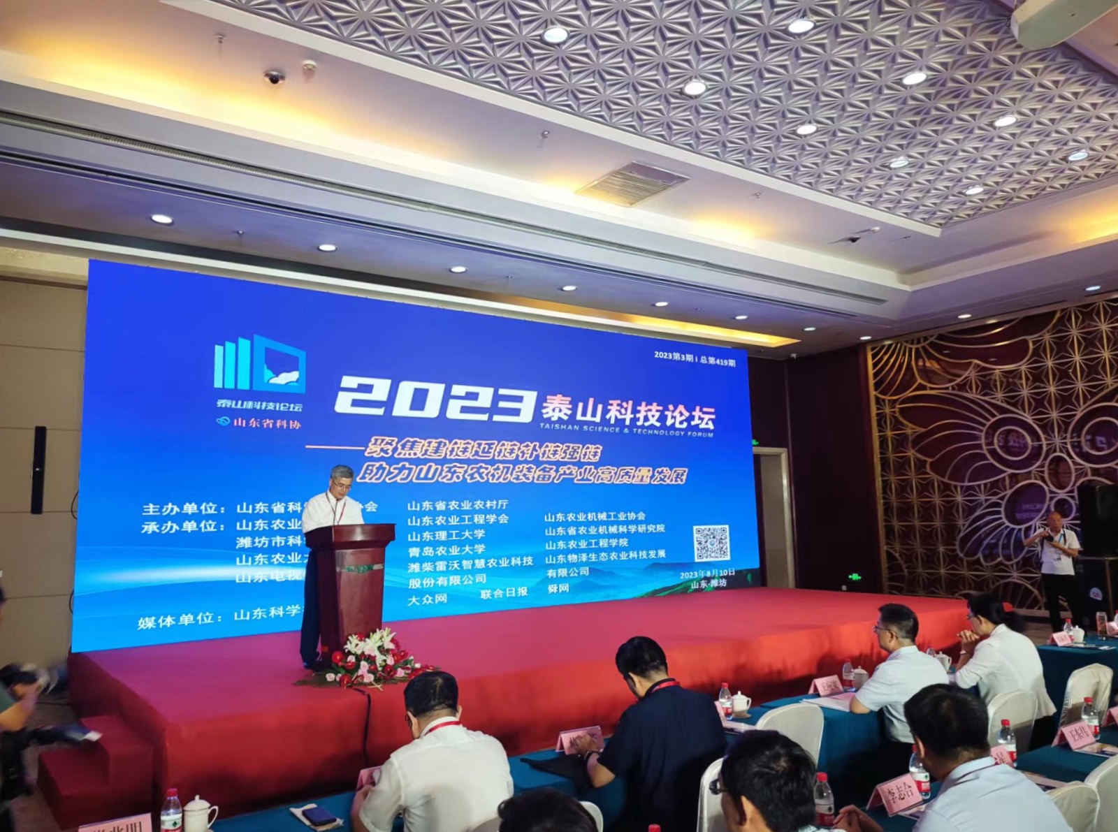泰山科技论坛创立于2015年,是由山东省科协精心打造的学术交流平台。论坛以活跃学术思想、推出原创成果、促进原始创新为宗旨,已成为省内外影响广泛的学术交流平台、智库研究平台和科技经济融合服务平台。本次泰山科技论坛是第419期,由山东省科协、山东省农业农村厅主办,山东农业工程学会、山东农业机械学会等12家单位承办。通过此次科技论坛,将联合多方科研力量,协同发挥“智囊”效应,为山东乃至全国智慧农业和现代农机行业发展提供强大的智力支持。
