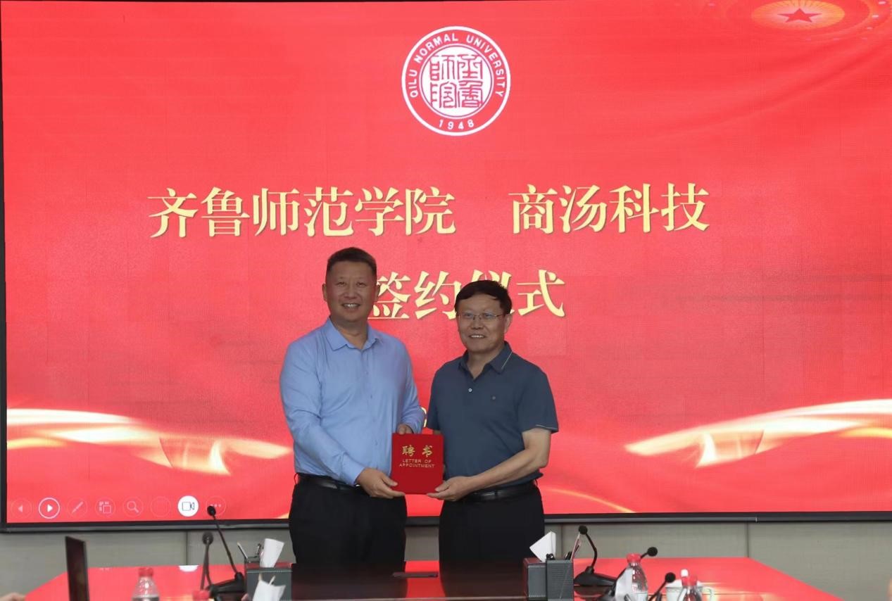 商汤科技智慧城市山东区域总经理刘国振、齐鲁师范学院合作发展办公室主任刘勇代表合作双方签署《人工智能教育与教学合作框架协议》。