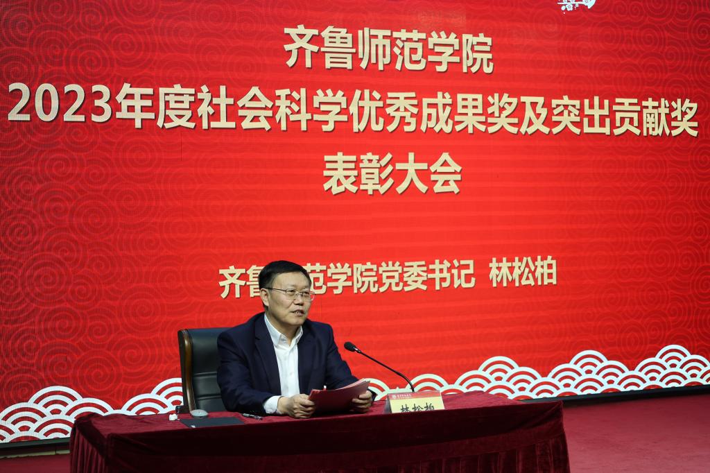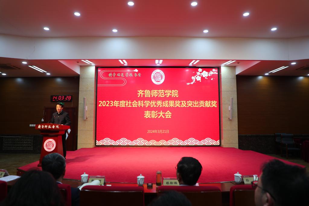 为深入学习贯彻习近平文化思想和习近平总书记关于哲学社会科学的重要论述,大力推动我校哲学社会科学工作不断发展,3月21日下午,齐鲁师范学院在章丘校区第一学术报告厅隆重召开2023年度社会科学优秀成果奖及突出贡献奖表彰大会暨2024年第一期“百脉论坛”学术报告会。党委书记林松柏出席会议并讲话,副校长张兆明,党委委员、副校长孙正出席会议。会议由孙正主持。
