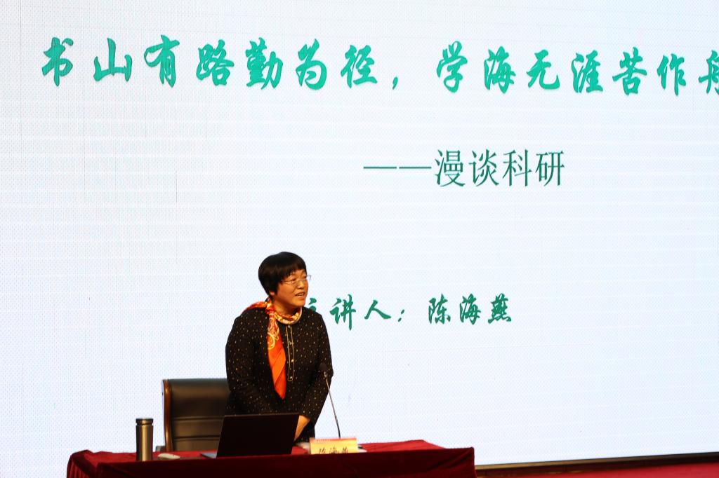 “百脉论坛”学术报告会上,陈海燕教授以《漫谈科研》为题,结合自身科学研究经历,重点从科研方向、科研选题、科研方法、科研精神四个方面,阐释了如何精准选题、论证,对学校广大社科工作者开展科学研究提供了重要指导和借鉴。