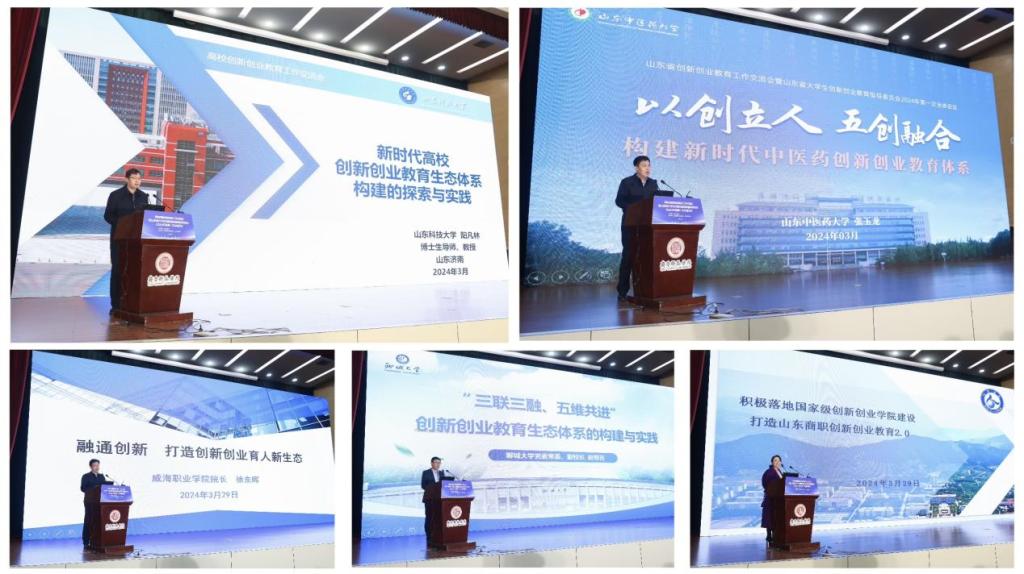 来自山东科技大学、山东中医药大学、聊城大学、山东商业职业技术学院、威海职业学院等五所高校代表就各自在创新创业教育方面的经验与作法进行了典型交流发言。