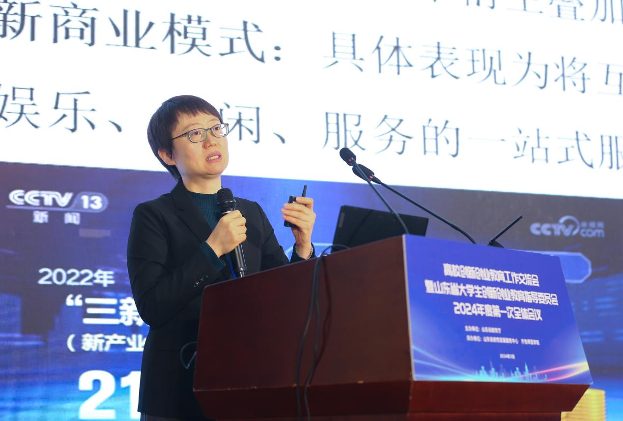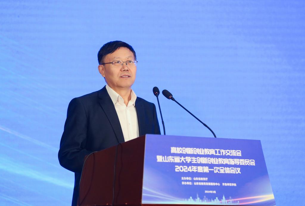 王浩进行会议致辞,他代表山东省教育厅对会议的成功举办表示热烈祝贺,向各位嘉宾表示诚挚欢迎,向长期以来关心支持山东教育事业特别是高校创新创业教育工作的各位朋友们表示衷心感谢。他总结了2023年我省高校创新创业工作取得的新成效、新突破,表示创新创业教育是学生创新创业的基础,是培养创新人才、服务创新驱动发展战略、促进高校毕业生更高质量创业就业的重要举措。各高校要坚持创新引领创业、创业带动就业,深化创新创业教育改革,提高创新人才培养质量,通过完善创新创业教育机制、完善创新创业教学体系、强化创新创业实践锻炼、做好创新创业指导服务四个层面,落实我省创新发展“十大行动”部署,切实加强对学生的创新创业教育,为教育强省建设提供源源不断的人才智力支撑。