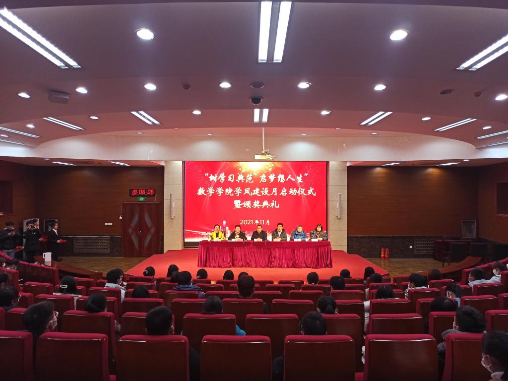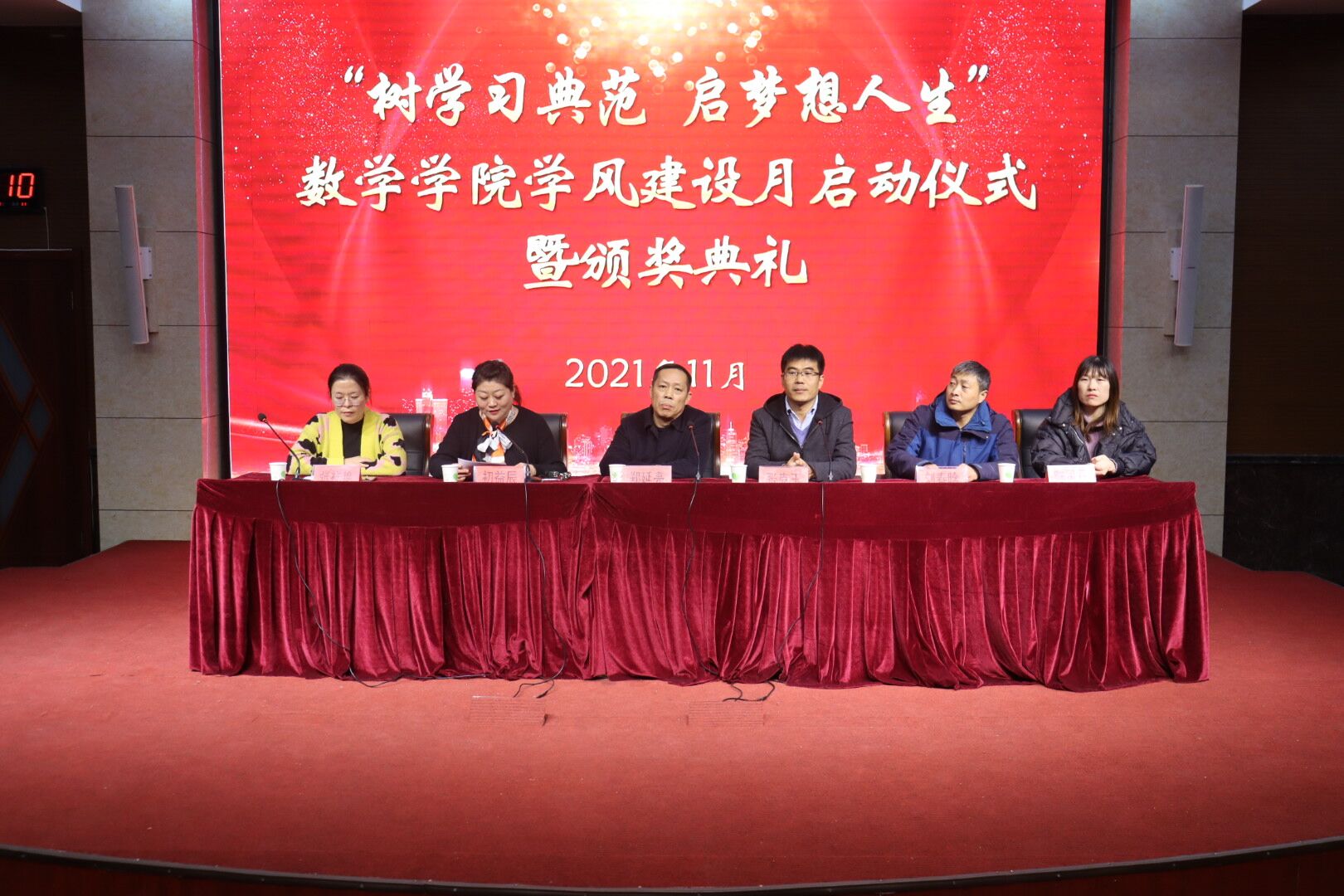为进一步端正学风,促进学生学习的积极性,创造好学、乐学、善学的学习氛围,数学学院于11月11日在学术报告厅举行了以“树学习典范 启梦想人生”为主题的学风建设月启动仪式暨颁奖典礼。数学学院党总支书记郑延亮、副院长张克玉、党总支副书记初益辰、院长助理刘春晗、办公室主任陈凤芹、团总支书记张祥艳出席会议。班主任代表、学生代表参加了此次活动。会议由初益辰主持。