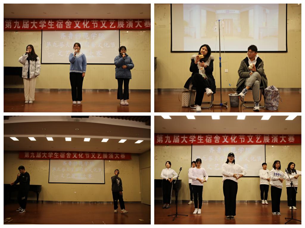 为进一步展现我校大学生精神风貌,发挥学生公寓育人阵地的功能,积极营造一个安全、文明、和谐、健康的宿舍环境。12月6日晚,由齐鲁师范学院学生工作部学生公寓管理服务中心主办、音乐学院承办的第九届大学生宿舍文化节文艺展演大赛在音乐厅成功举行。学生工作部公寓管理服务中心主任万丽丽、宋晓蕾老师、张永恒老师,音乐学院青年教师曲明昊,音乐学院团总支王海波老师、尹亚男老师担任评委。