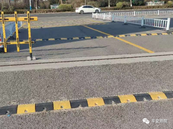 学校还在重点路口加装了减速带,一条条黄黑相间的减速带为师生出行安全增加了一份保障。