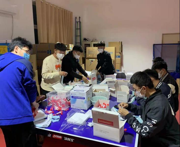 在校内,学院大学生青年志愿者服务队亦闻令而动,积极投身到疫情防控志愿者工作中,服从学校疫情防控指挥要求。在核酸检测结束时,为已经完成检测的师生发放“检测完成”贴纸、在连日的全员核酸检测前,做好抽样检测试管的条形码粘贴工作等后勤保障服务,他们心系师院,在疫情面前,他们没有退缩,参与的学生也纷纷表示,作为新时代青年,在疫情防控严峻挑战时,就要用“明知山有虎,偏向虎山行”的壮举去投入疫情防控工作。