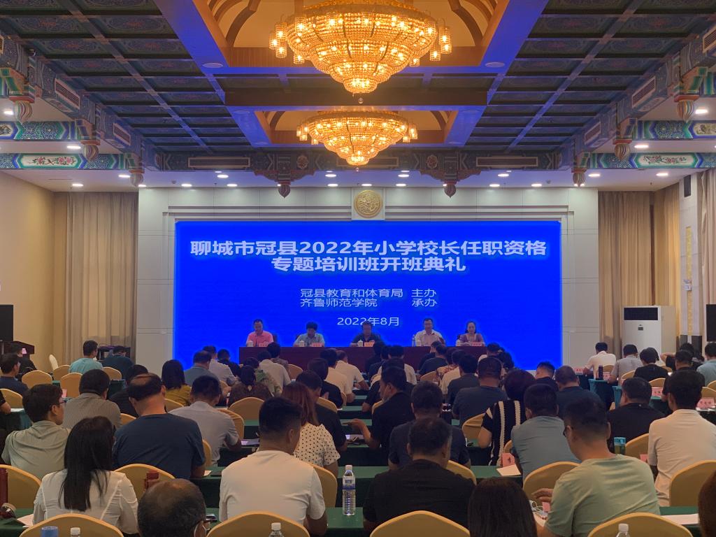8月14日下午,由冠县教育和体育局主办、齐鲁师范学院承办的聊城市冠县2022年小学校长任职资格专题培训班在济南开班。齐鲁师范学院基础教育服务中心主任孙卫国,冠县教育和体育局副局长范洪超,齐鲁师范学院基础教育服务中心副主任于家富,冠县教育和体育局师训科科长肖凤瑞、副科长吕红雨出席了开班仪式。开班仪式由于家富主持。