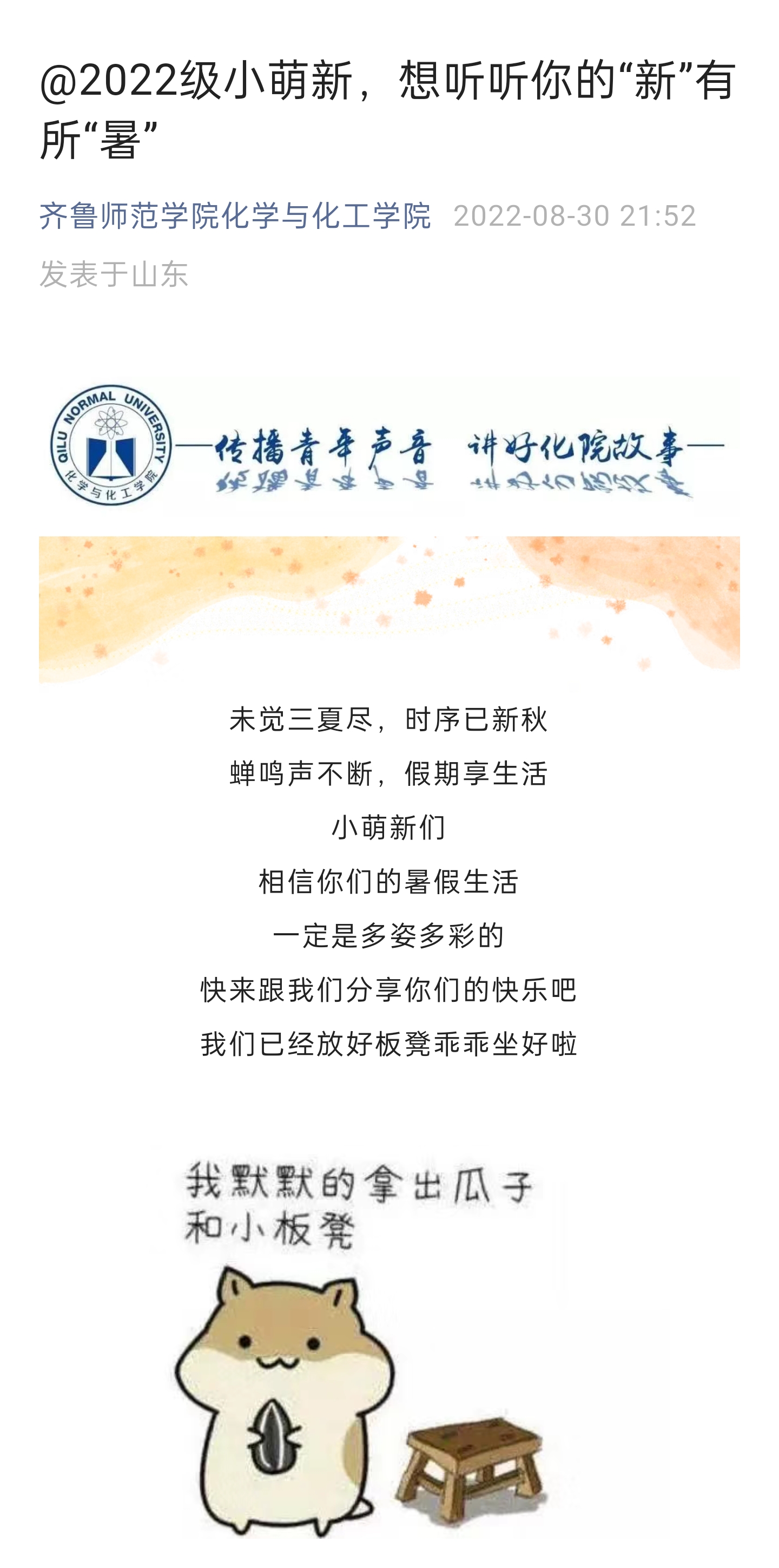为做好2022级新生报到工作,确保新生开学报到有序、校园安全与师生健康,化学与化工学院围绕“老师用心、家长安心、学生顺心、活动暖心”的工作目标,提前谋划、精心部署、严格落实,喜迎2022级新生入学。