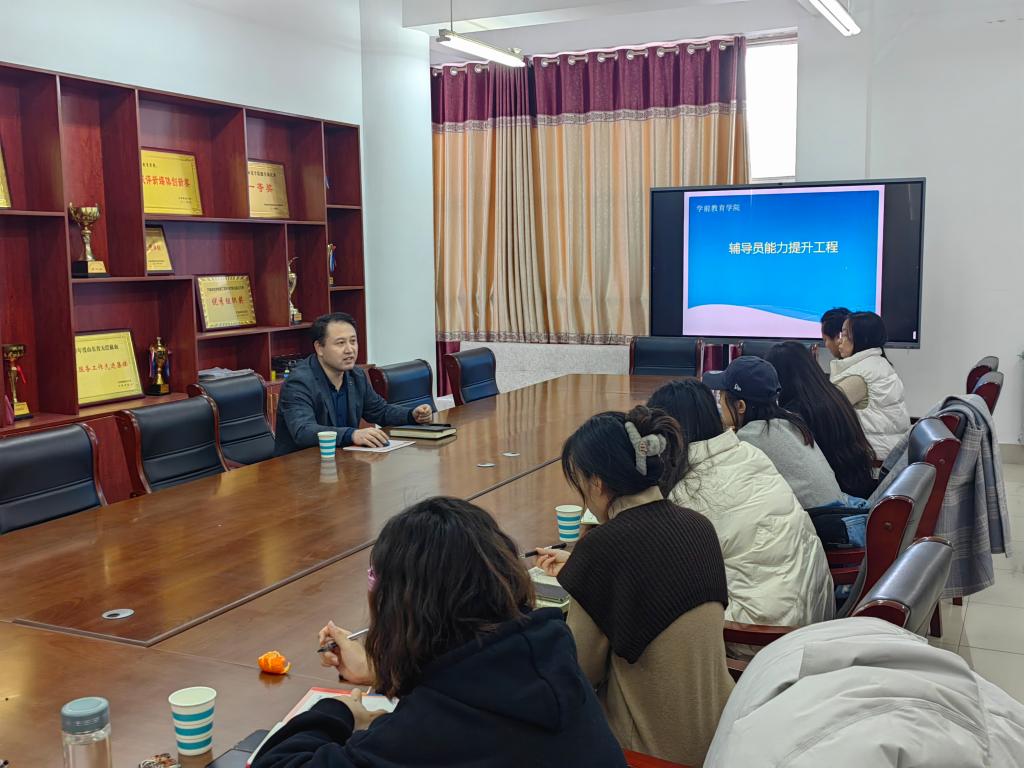 孙建凯介绍了学院实施“辅导员能力提升工程”目的和意义以及计划安排,并就实施好提升工程提出了要求。