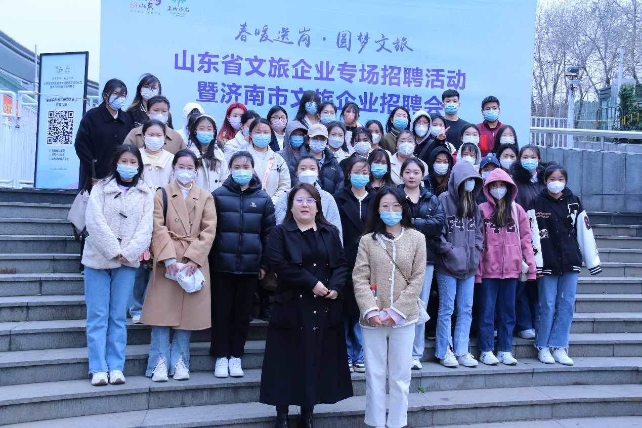 山东省文化和旅游厅联合山东省人力资源和社会保障厅、山东省教育厅、济南市政府举办的山东省文旅企业专场招聘会,于3月11日在舜耕国际会展中心进行。学生工作部副部长、就业指导中心主任万丽丽,地理与旅游学院辅导员徐媛媛带领地理与旅游学院60位旅游专业毕业生参加了此次招聘会。