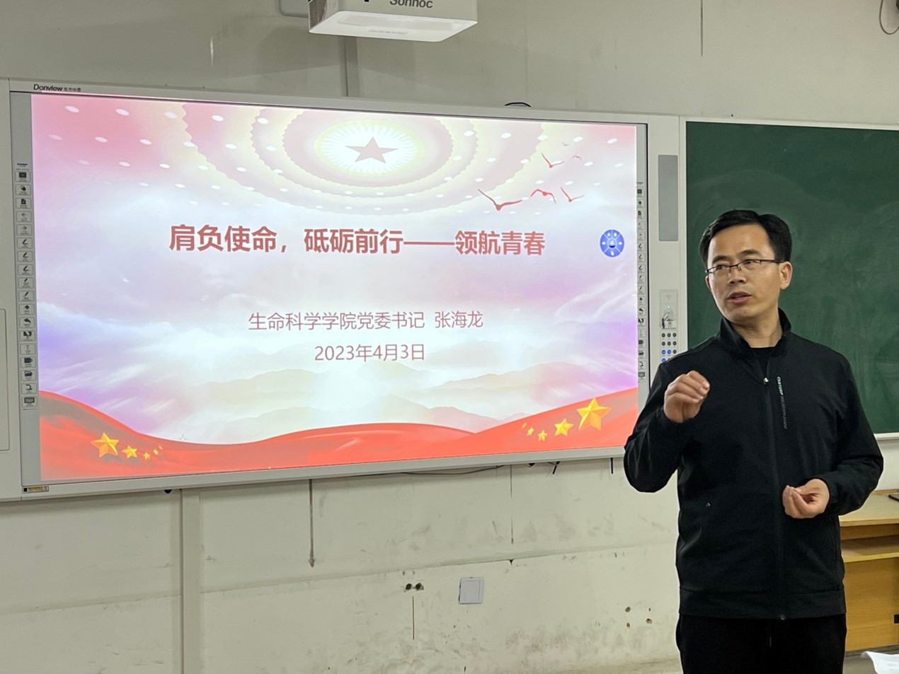 4月3日,张海龙以“肩负使命,砥砺前行——领航青春”为题进行首讲。他指出“五个要”:生科学子要坚定理想信念上做表率;要练就过硬本领奋勇争先;要树立服务意识善作善成;要做阳光心态、健康体魄的榜样;要秉承“厚德厚行,求真求实”的院训,学在生科,爱在师院,以青春之我奋进新时代,书写新华章。