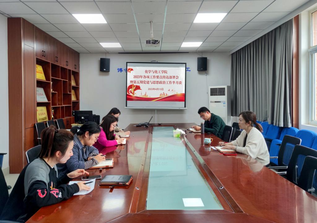 为深入学习宣传贯彻党的二十大精神,传达部署落实学校有关会议精神,统筹谋划与聚力推进学院工作,4月13日下午,化学与化工学院召开学校2023年工作要点传达部署会暨第五期党建与思想政治工作半月谈,学院党委书记郭百灵、党委副书记巩磊、全体辅导员参加了会议。郭百灵主持会议。