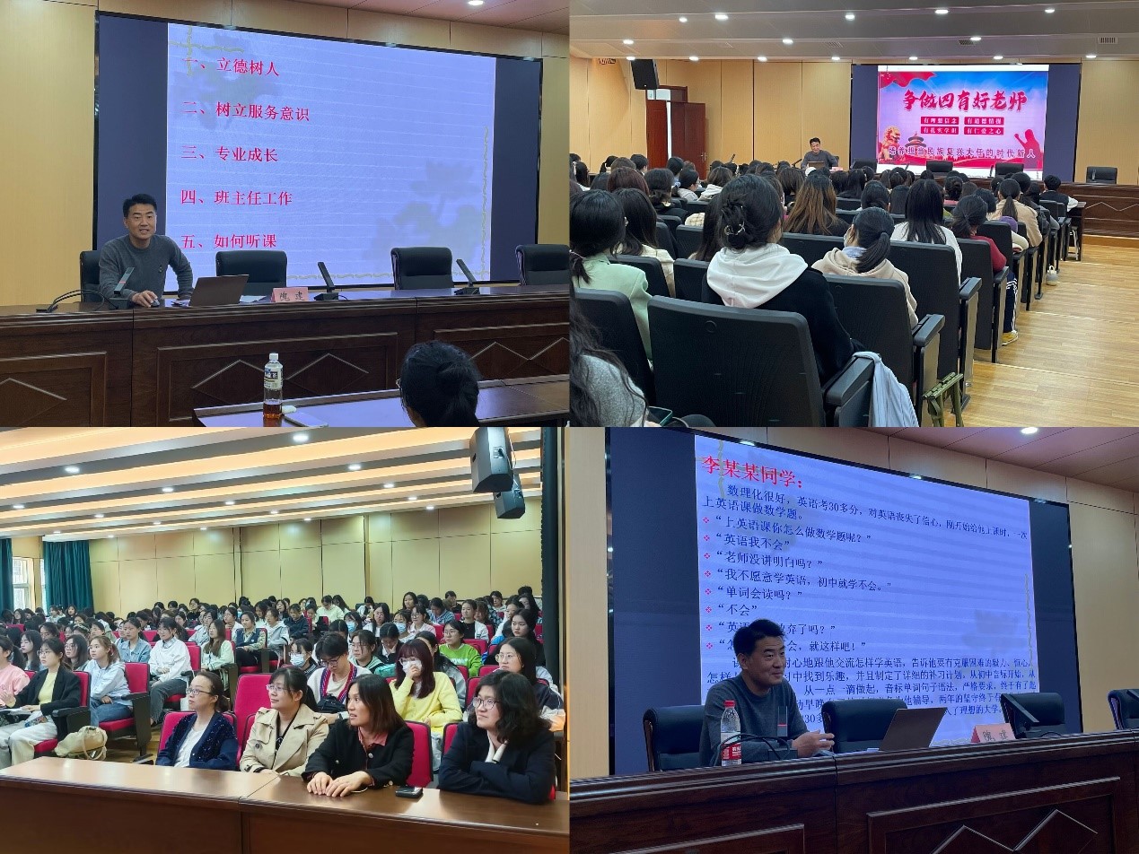 会上,英语教育教研室副主任董苗苗就师范生见习意义、目的及要求进行了说明。隗建以《做一名用心的老师》为主题,从立德树人、树立服务意识、教师专业成长、用心当一名班主任和如何见习听课等五个方面详细介绍了有关内容。他用生动的教学案例告诉同学们“专业是教师在教育行业的立身之本,教学有法,教无定法,要形成自己的教学风格”。他鼓励同学们在大学期间要多参加教学比赛,充分意识到教师身上肩负的责任和使命,夯实自己的专业知识,为未来的教学实践打下基础。通过此次动员讲座使同学们更加明确了教育见习的目标,将理论的、碎片化的知识切实沉淀成对未来从事教育工作的技术与能力,更加坚定了成长为优秀教师的信念与信心。