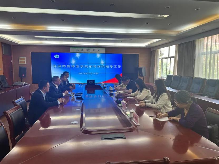 在长清区职业中等专业学校,学校党总支书记、校长王家政等领导班子成员先是陪同音乐学院一行对该校主校区和幼教校区进行了实地调研。随后,双方进行了座谈交流,万梅红介绍了音乐学院在人才培养、艺术实践、就业实习等方面的具体情况,希望借助本次访问交流,切实了解中职教育的人才需求,为师范类人才培养把握方向。王允华对该校的飞速发展、先进的办学理念以及严格的教学管理等方面给予了高度评价,并表示长清职专在扎根教育事业、服务地方经济发展等方面的经验值得学习和借鉴,希望以此为契机,深入合作交流,优化人才培养。